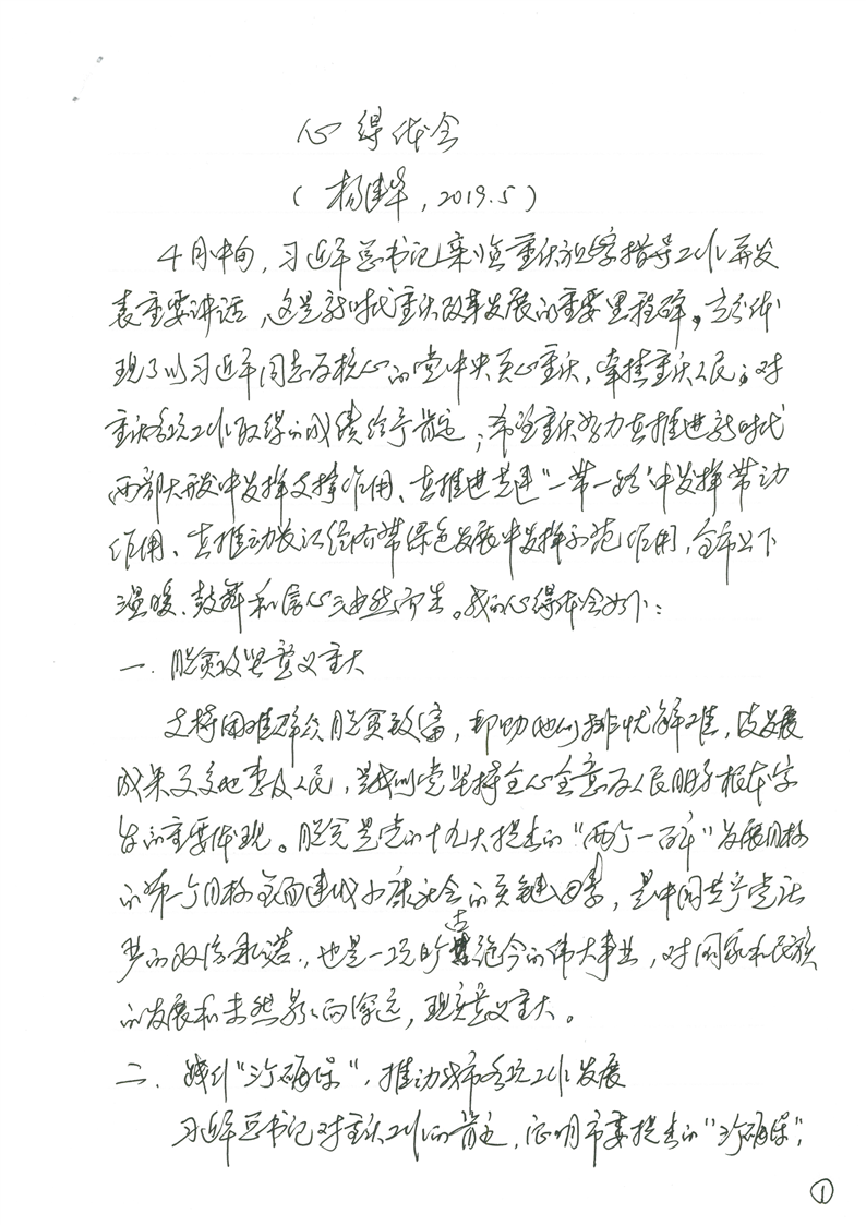 学习习近平总书记视察重庆重要讲话精神、心得体会 - 杨建华