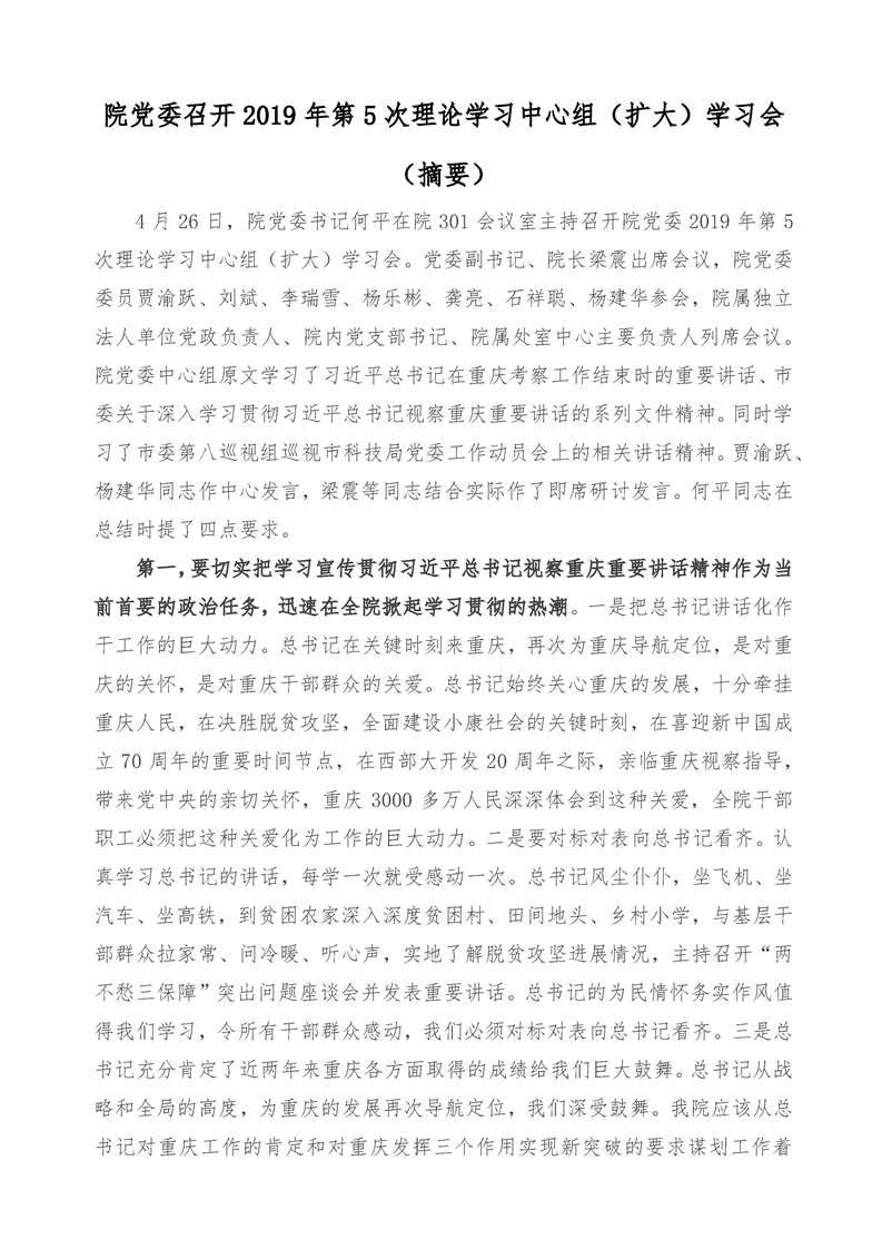 重科凯发k8官网2019年第5次理论学习中心组(扩大)学习会新闻(摘要)