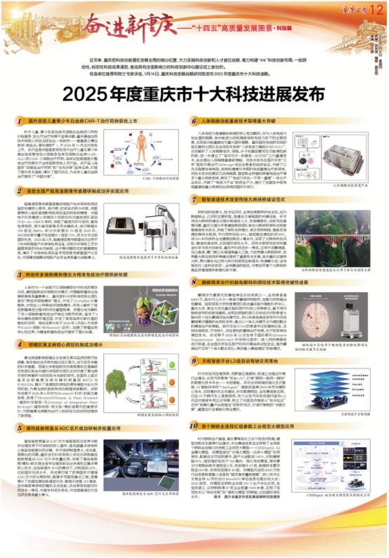 近期,重庆科技开展战略研究院发布了2025年度重庆市十大科技进展。